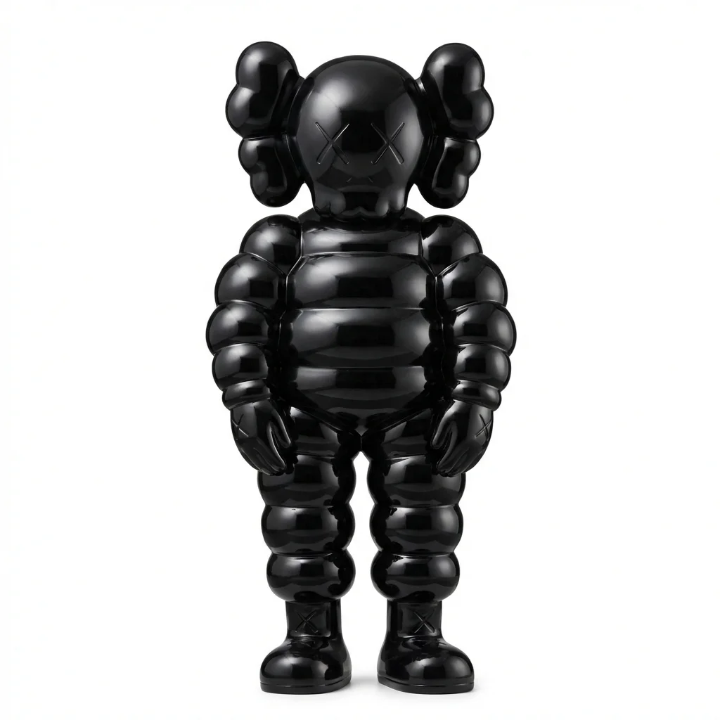 Виниловая раскрашенная скульптура KAWS — What Party (Black) — представляет собой персонажа Chum в черной версии, одного из узнаваемых «игрушечных» образов художника. Образ Chum навеян Bibendum (широко известным как «мишелиновский человечек») — талисманом шинной компании Michelin. В интерпретации KAWS фигура сохраняет узнаваемые очертания Bib, но вместо привычного лица — культовые Х-образные глаза и перекрещенные кости от персонажа Companion.