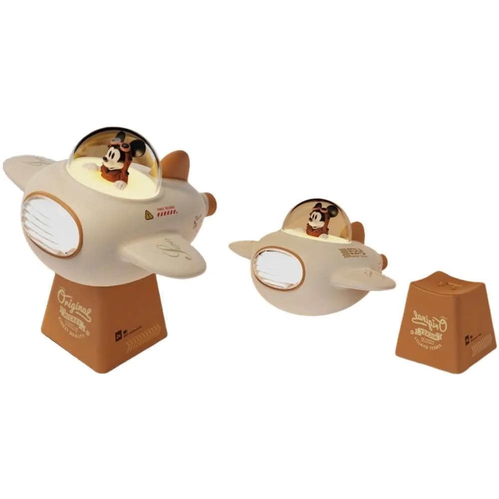 Микки в роли пилота на борту миниатюрного самолёта. Эта фигурка — ещё и ночник, добавляющий в коллекцию немного функциональной магии. Подарок для фанатов старых мультфильмов о воздушных приключениях.